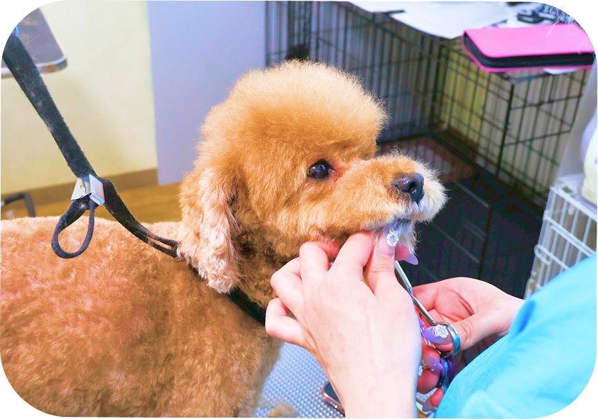 爪切り、肛門腺絞り、足裏カット、足回りカット、肉球ケア、足先バリカン、歯磨き、部分カット、顔カット、デザインカット、毛玉取り、ハーブパック、ローズモイスチャーパック、皮膚ケアシャンプー
